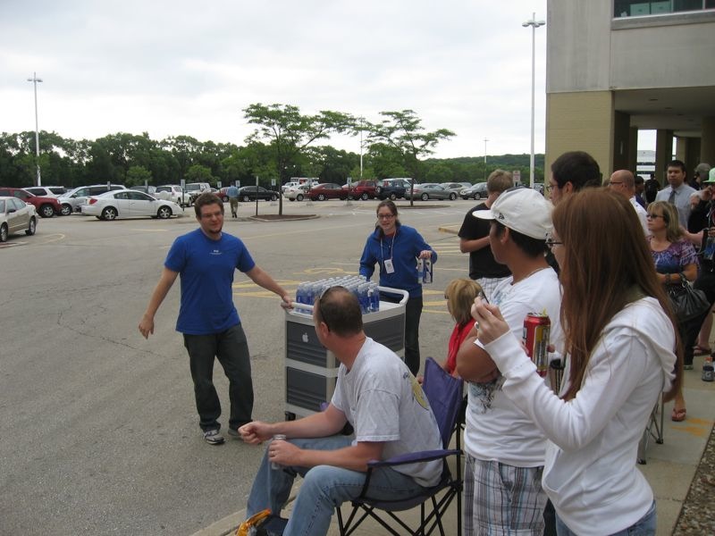 Not wanting to wait another day longer I decided that I’d wake up early Thursday morning, get to the Mayfair Apple Store at 6 a.m. (an hour before the store opened) and I’d be home playing with it in a couple of hours. How wrong I was. So very wrong. When I arrived I found myself at the back of a very long line. Something like 500 people in front of me. Now what was even worse was that there were two equally long lines, one for preorders and one for everyone else. I was so far back in line that I was outside the mall.